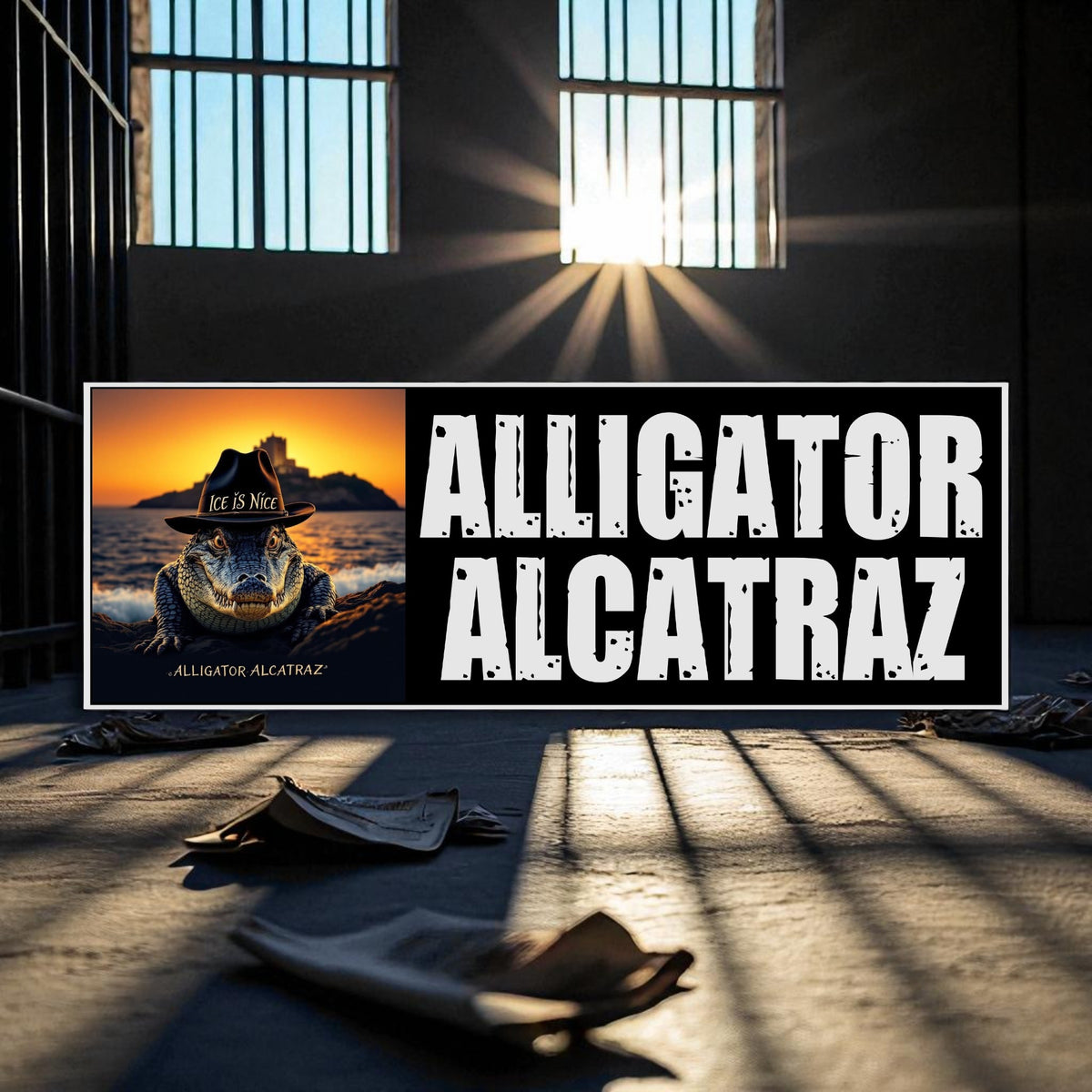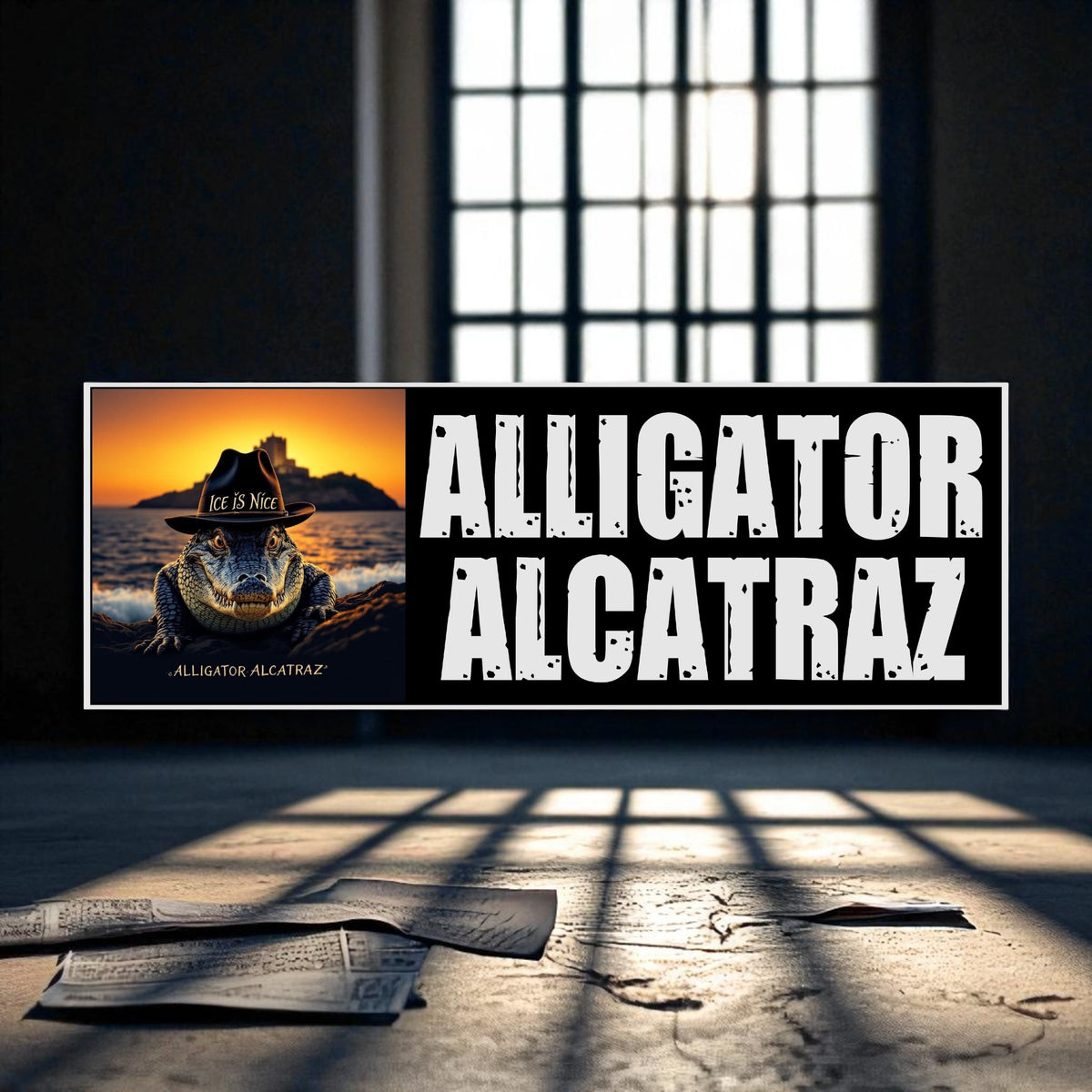 Alligator Alcatraz Border Patrol Front Bumper Sticker or Magnet - Various Sizes