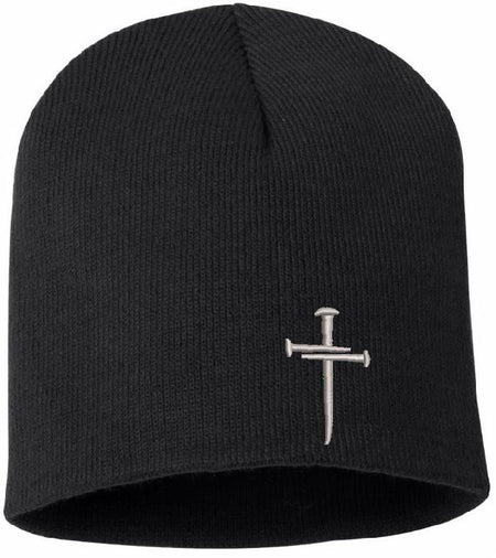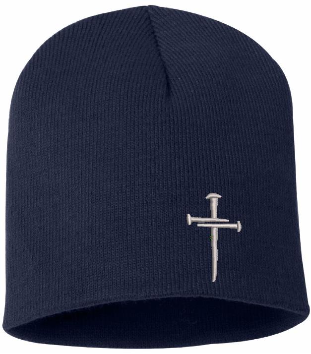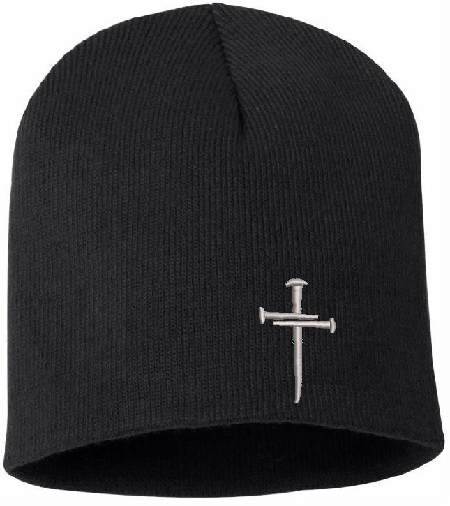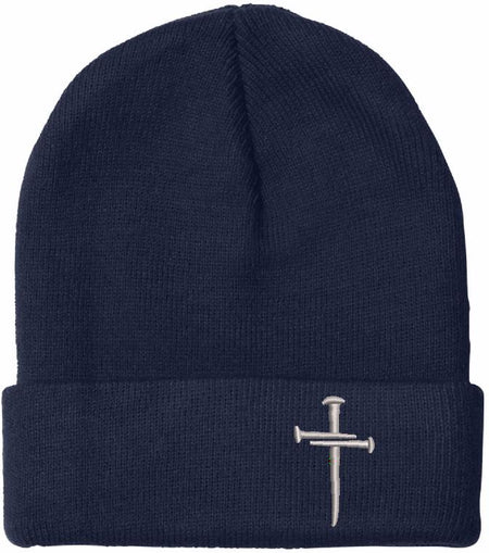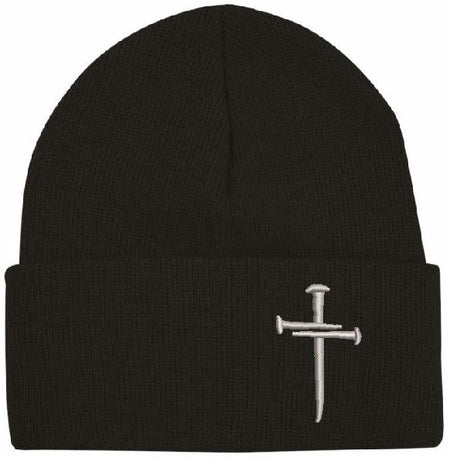 Christian 3 Nail Cross Embroidered Winter Cuff or Beanie Hat