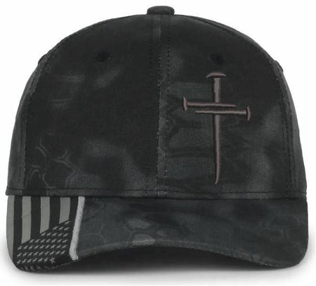 Christian Cross DARK GRAY Sacred Nails Typhoon Adjustable hat with FREE CHALLENGE COIN