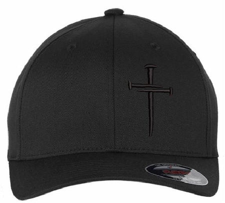 Christian Hats for Men Women Jesus 3 Nail Cross Hat Premium BLACK/BLACK XL/2X Hat & Decal