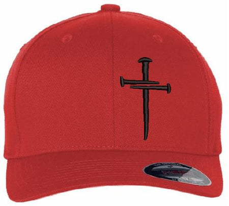 Christian Hats for Men Women Jesus 3 Nail Cross Hat RED FLEX FIT L/XL with a Free 4" Decal