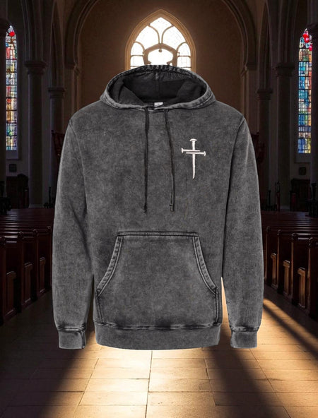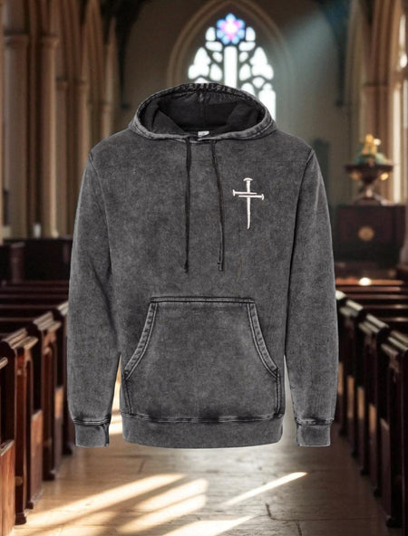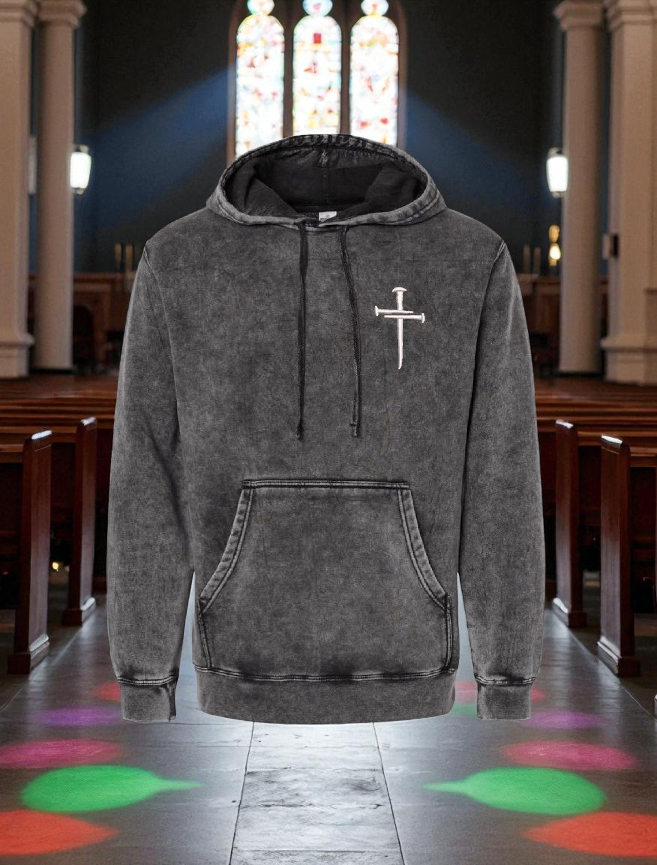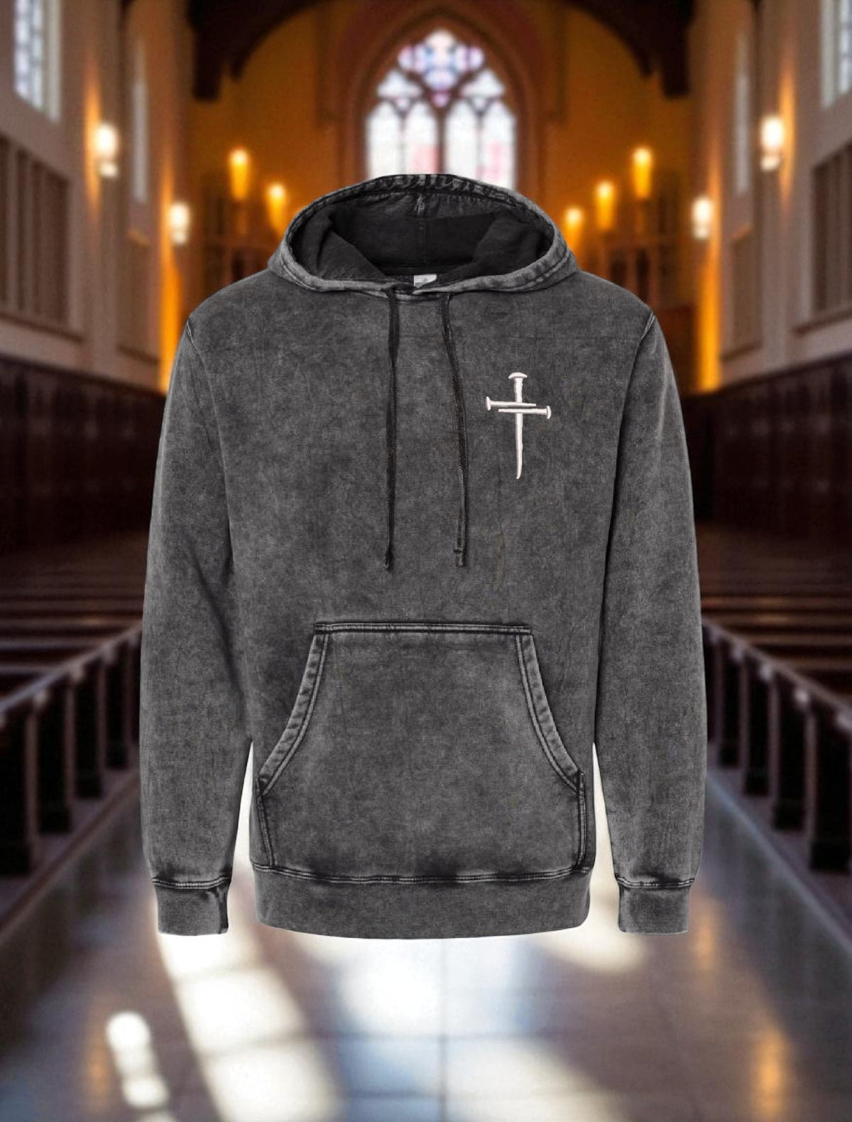 Christian Hoodie 3 Nail Cross Unisex Midweight Mineral Wash Long Sleeve Pullover PRM4500MW Independent Trading Company Tops
