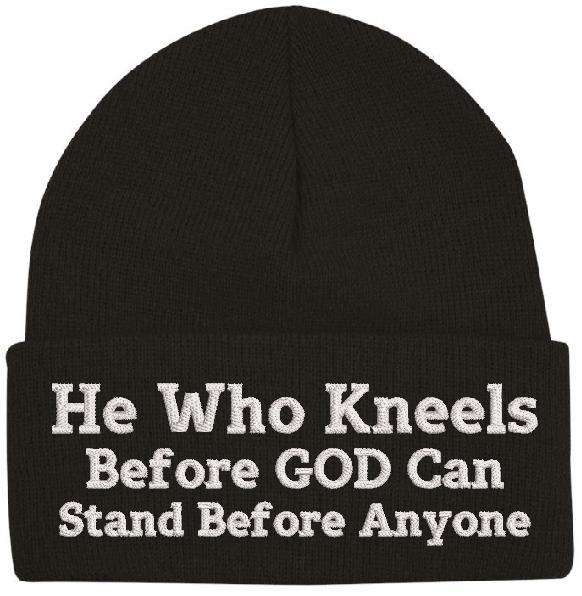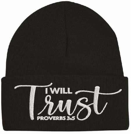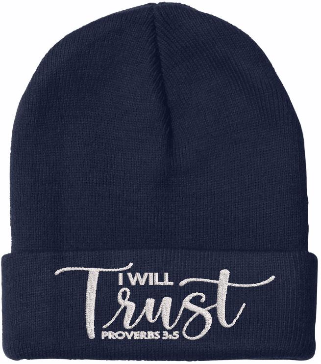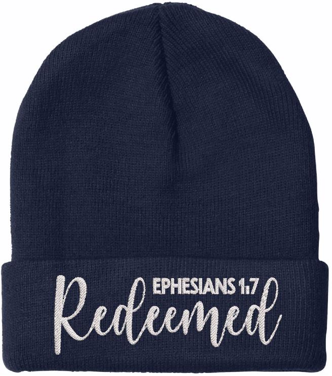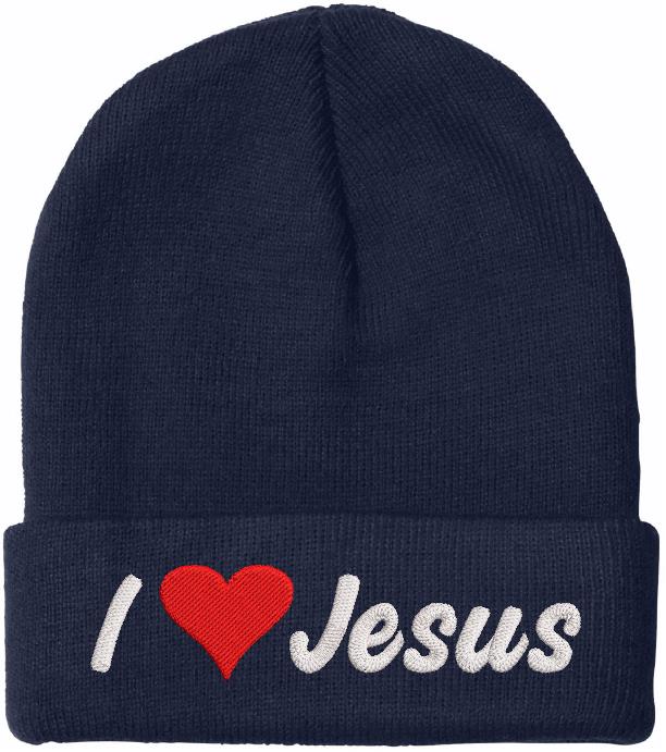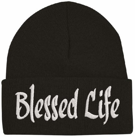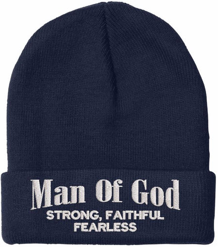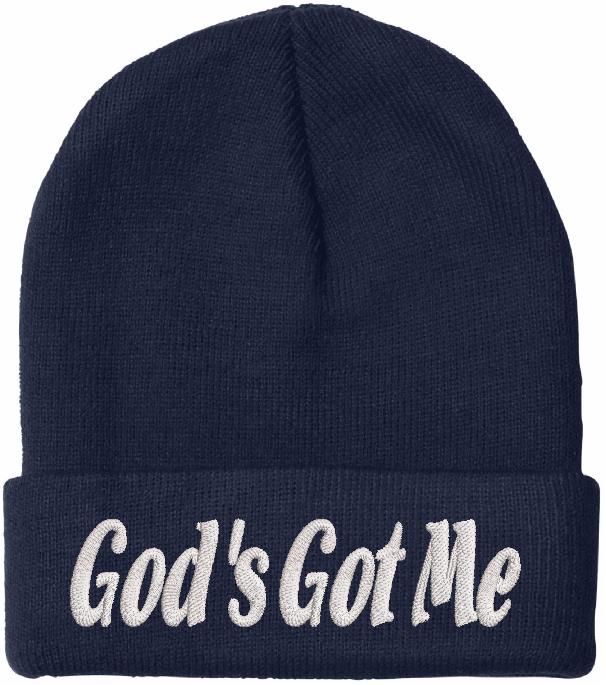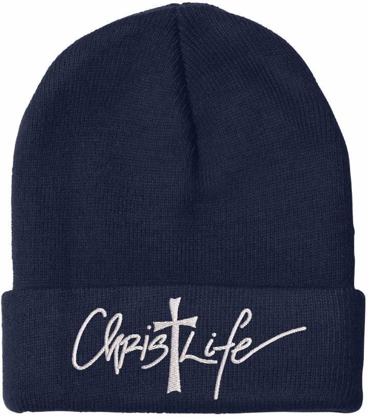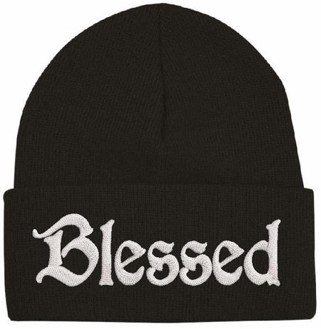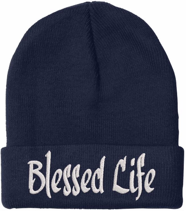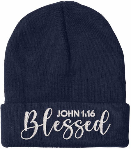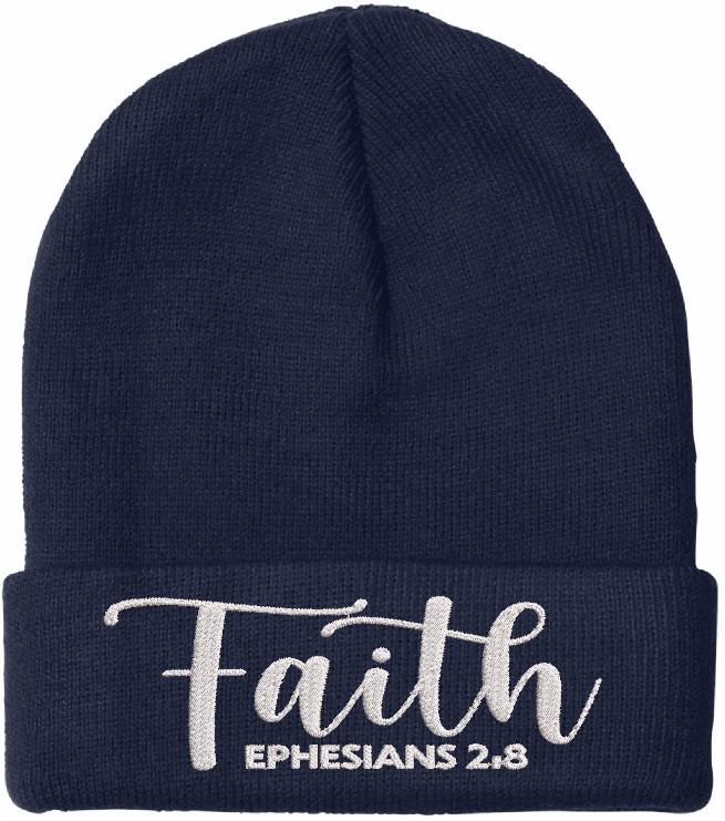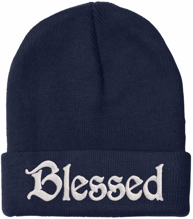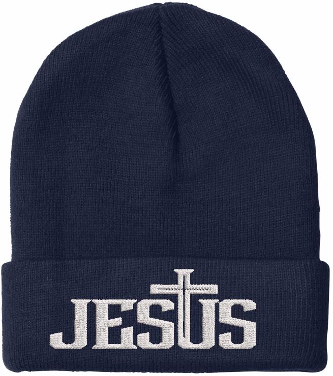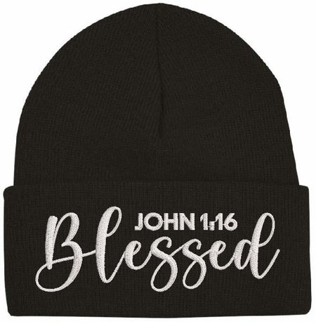 Christian Winter Hats 3 Nail Cross, Blessed, Faith and More Designs Black or Navy Winter Hats