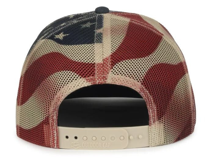 The Richardson 112 or the Outdoor Cap OC771 are the Adjustable hat and is a "Mesh Back" Snapback Adjustable Hat. The hats are identical, just with a different brand new. The "Breathable" Mesh back hats have the USA Flag on the back also.