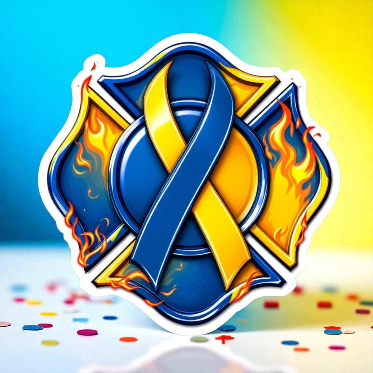 Firefighter Decal Down Syndrome Maltese Cross Flames V20 Window/Hardhat Decal