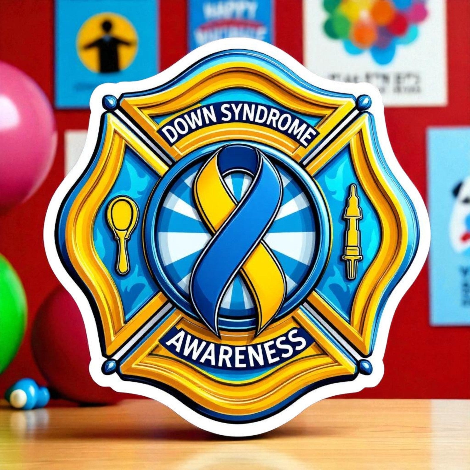 Firefighter Decal Down Syndrome Maltese Cross Window/Hardhat Decal
