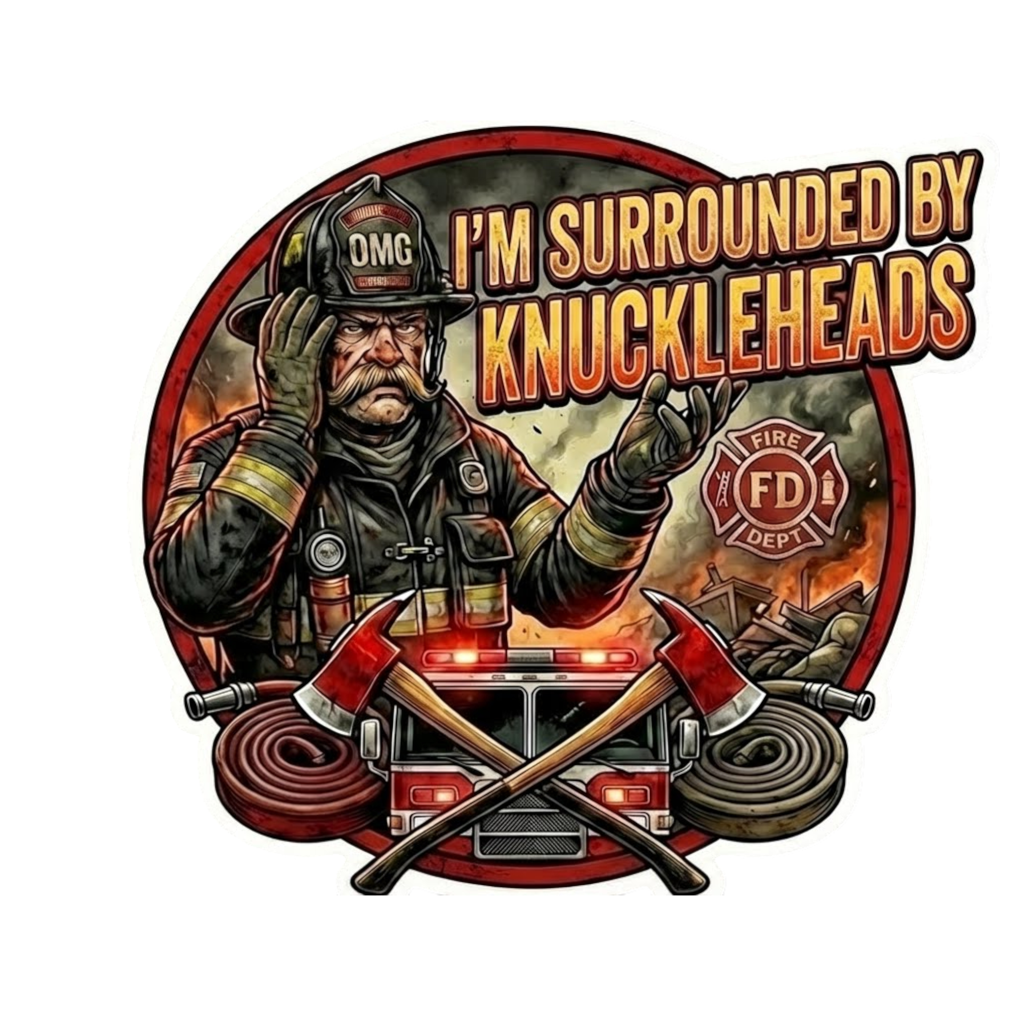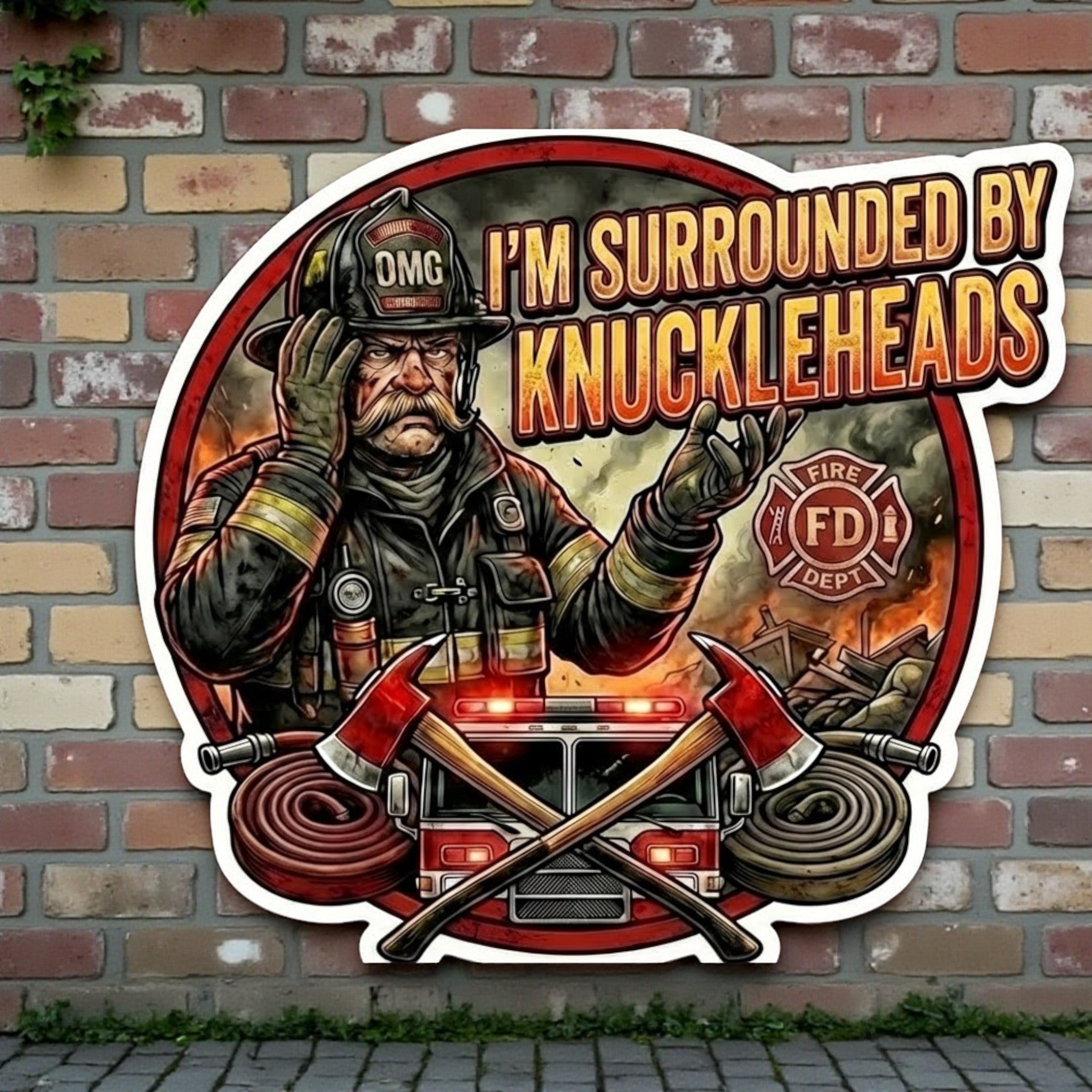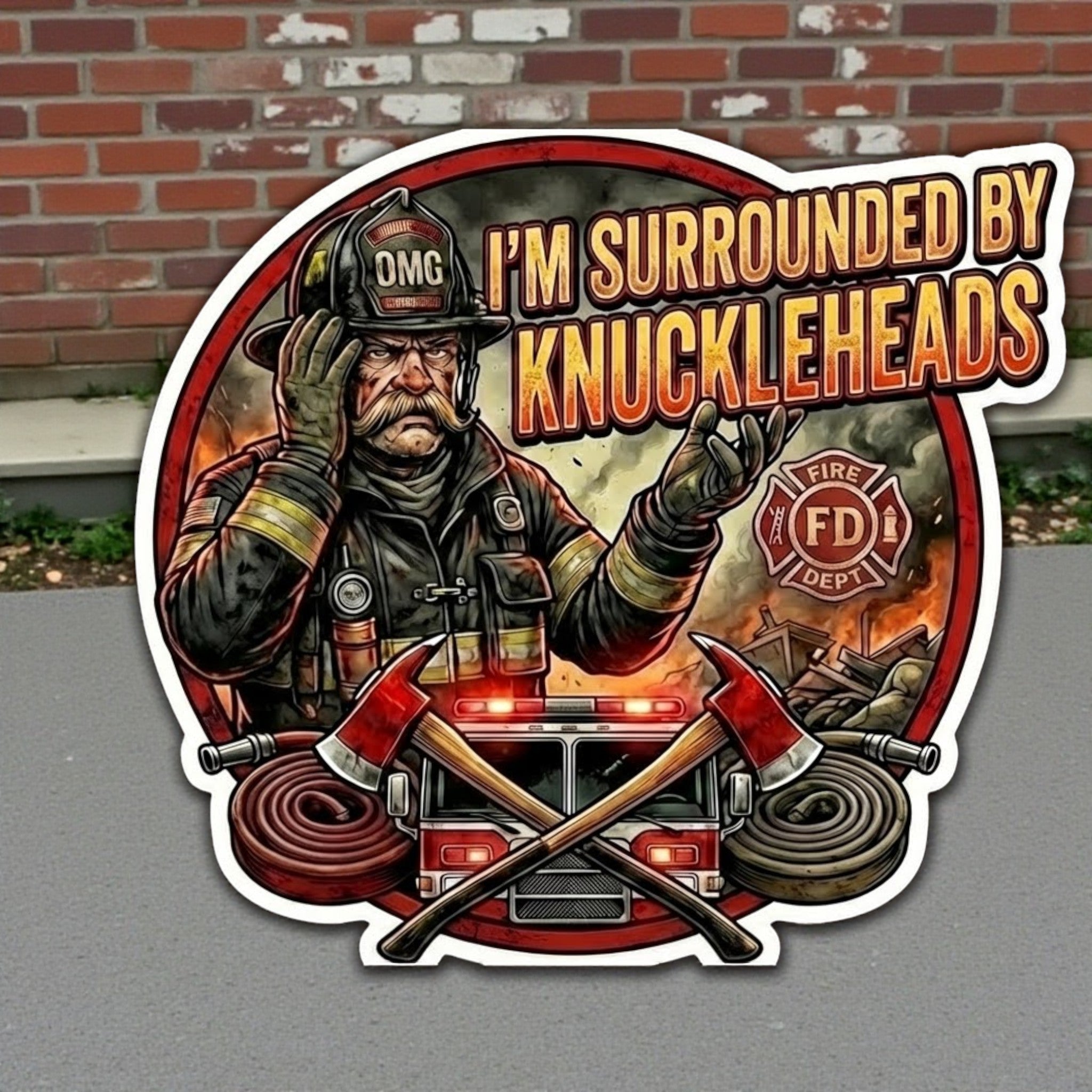 Firefighter Decal SURROUNDED BY KNUCKLEHEADS Non Reflective Fire Department Decal tiktok