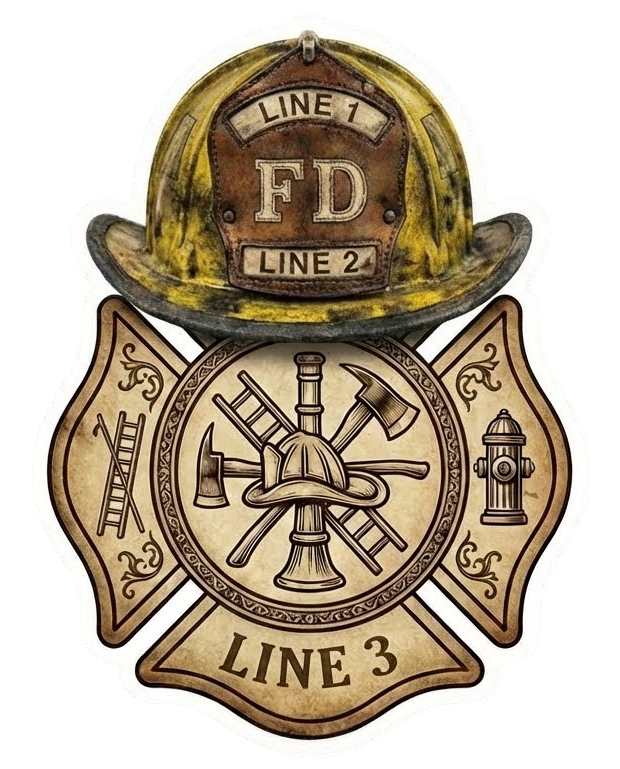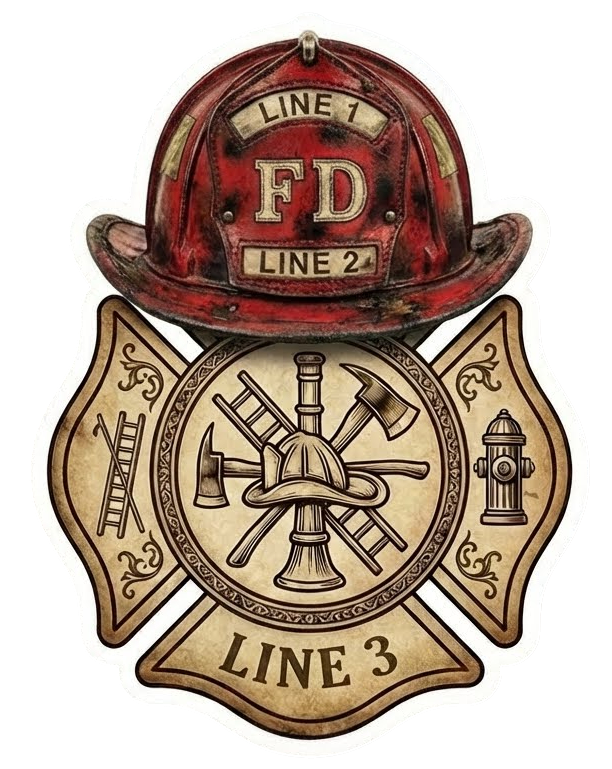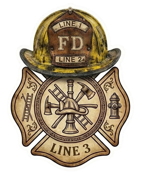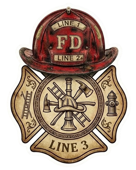 Firefighter Old School Maltese Cross Helmet Custom Made Helmet or Window Decal - FULLY CUSTOMIZABLE