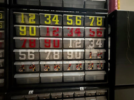 YOU GET BOTH BINS WITH THIS PURCHASE. With this purchase, you get all of the reflective and regular helmet size decals in this bin of 24 bins. There are HUNDREDS of decals that you can use for re-sale, sell them online, use them for your own personal use, do whatever you want with them. This sale is a one time sales and what comes in these bins are as is. They are professionally printed, UV Laminted decals that are made to last.