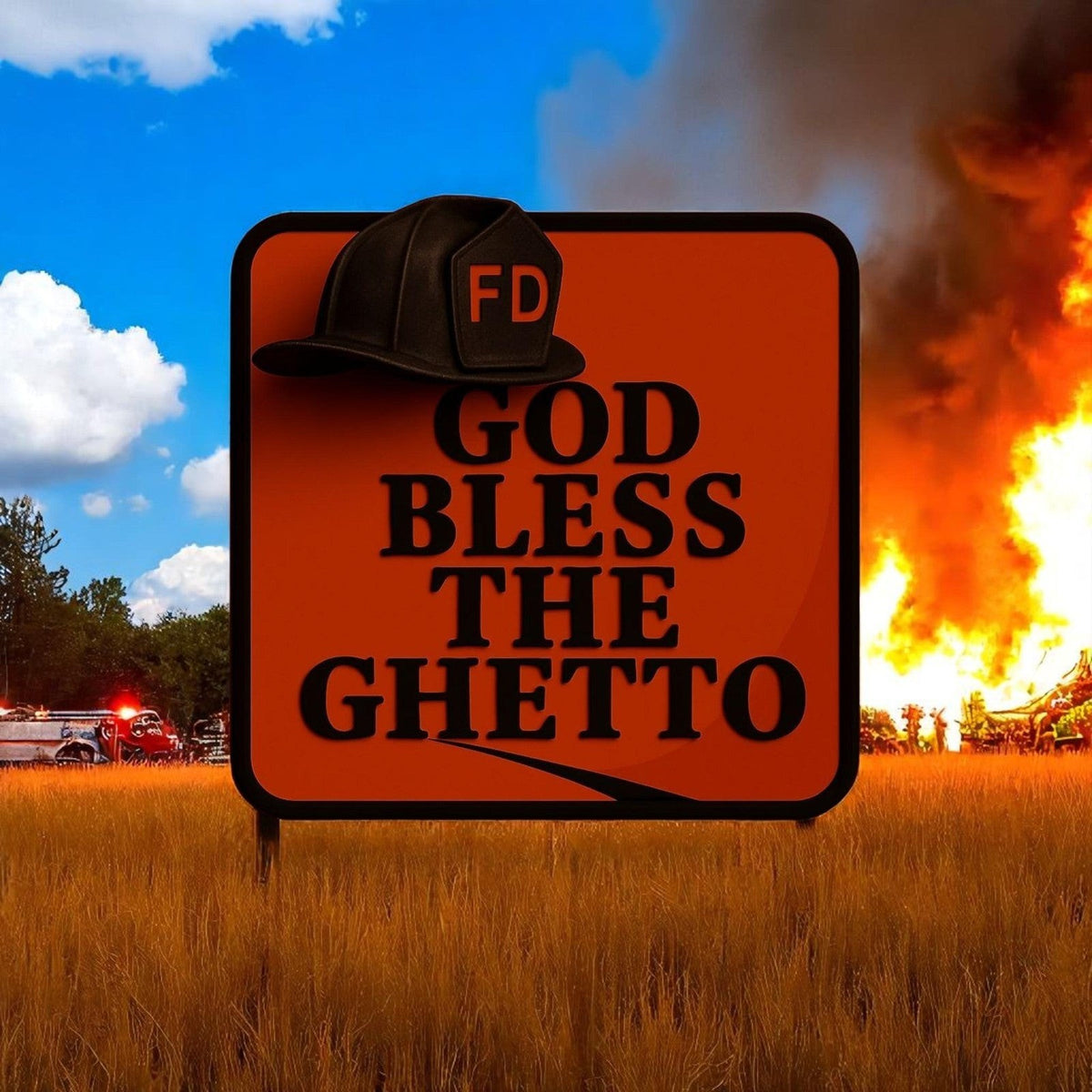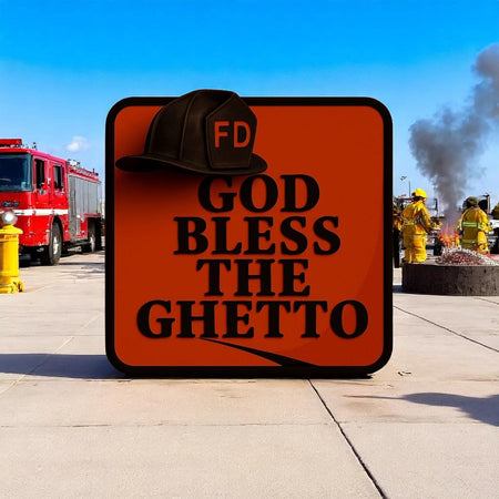 Firefighter Sticker Decal God Bless THE GHETTO Fire Department Volunteer Decal