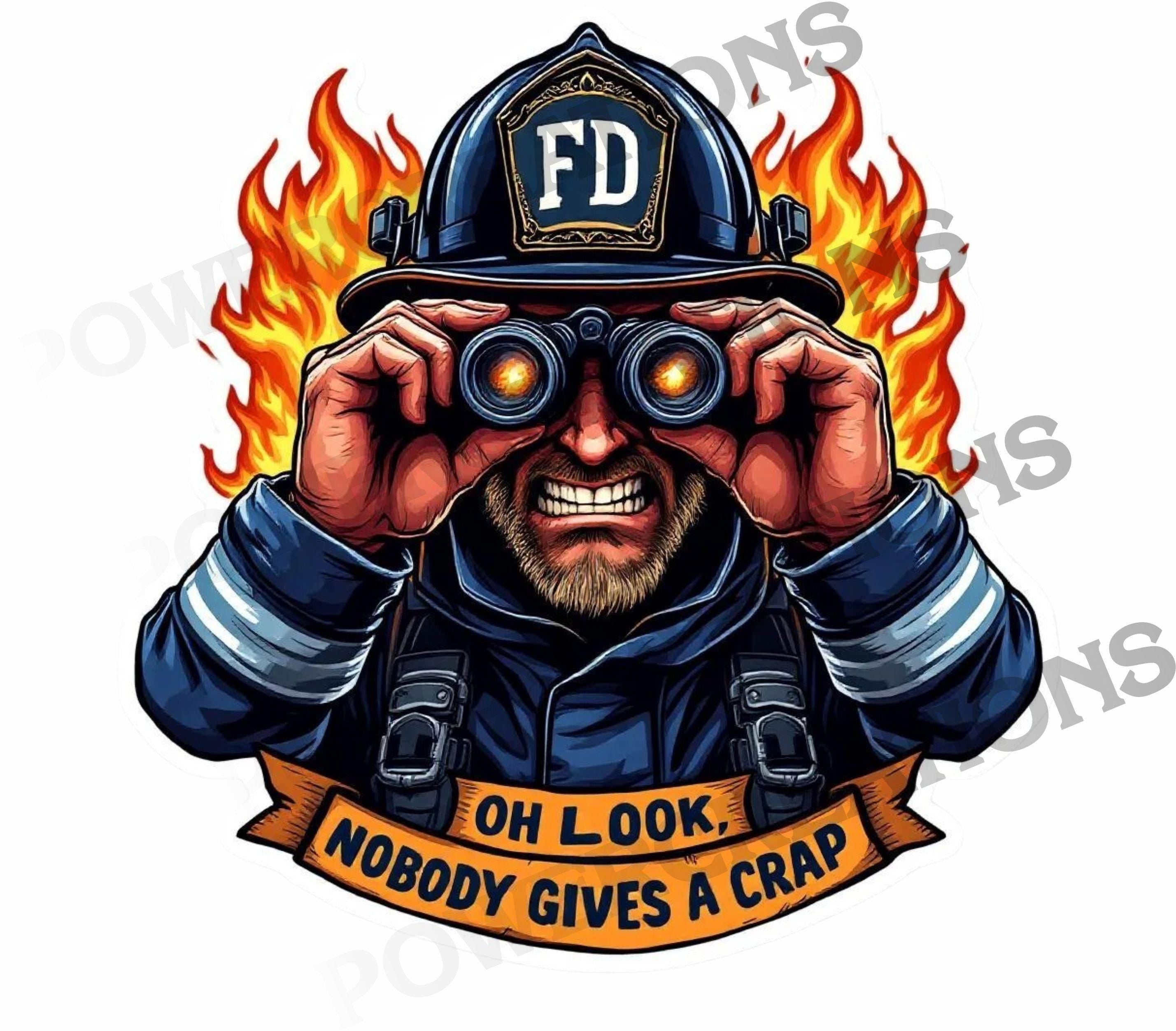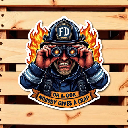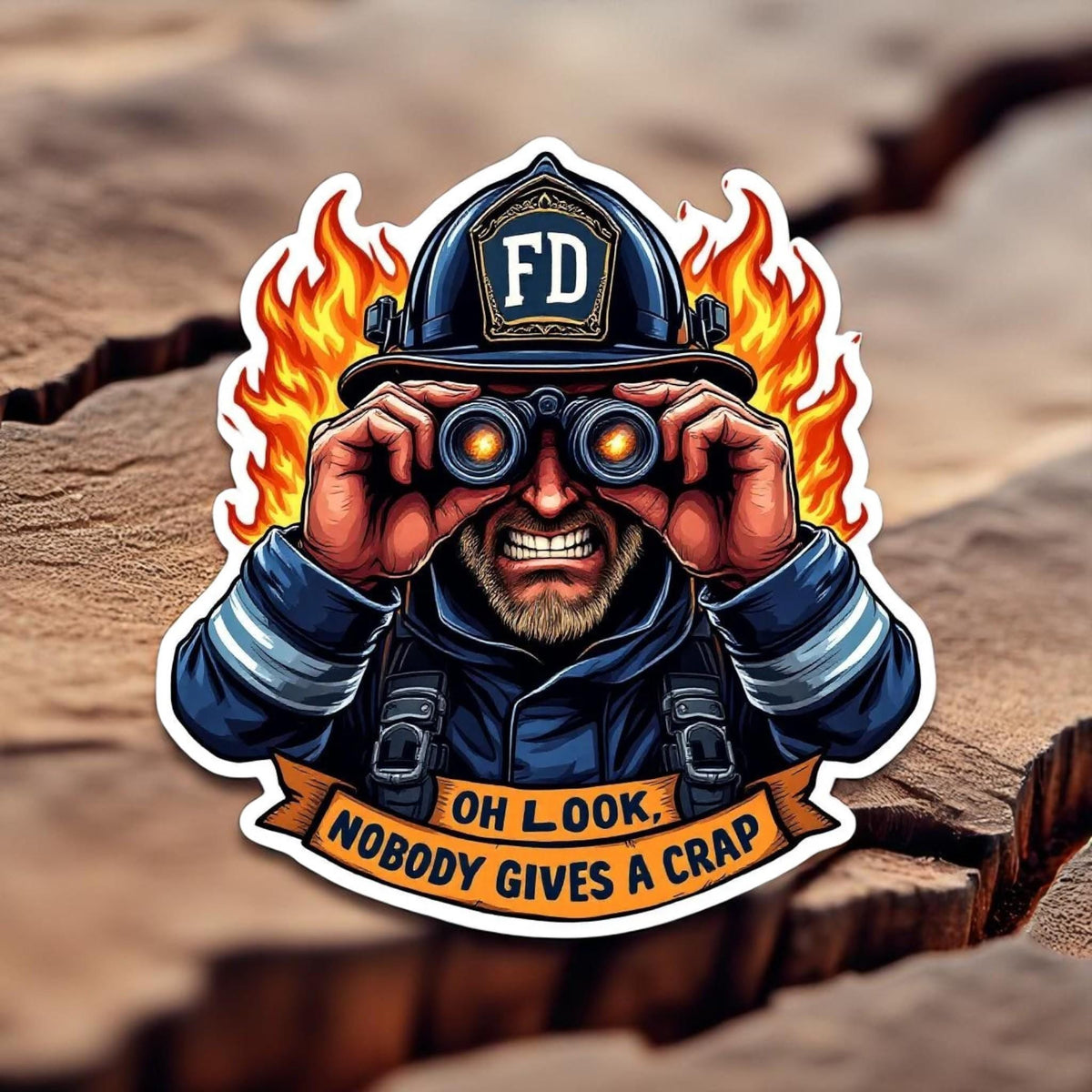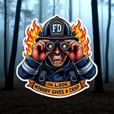 Firefighter Sticker, Nobody Gives a Crap firefighter, bunker gear, fireman, ax, mustache, fire department, hero, firehouse, sticker, fire