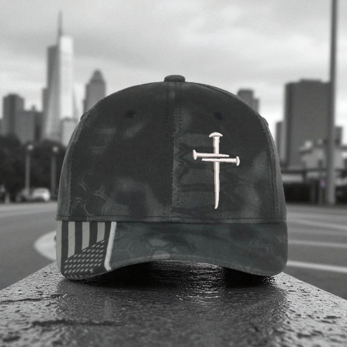 Celebrate your faith with this stylish Christian hat, perfect for both men and women. The hat features a distinctive sacred nails christian crossdesign, a meaningful symbol of faith. It's a great addition to your wardrobe for various occasions. Enjoy of of our many Armor of God Challenge Coin that comes with this hat. Embrace your faith with this comfortable hat, suitable for any occasion.