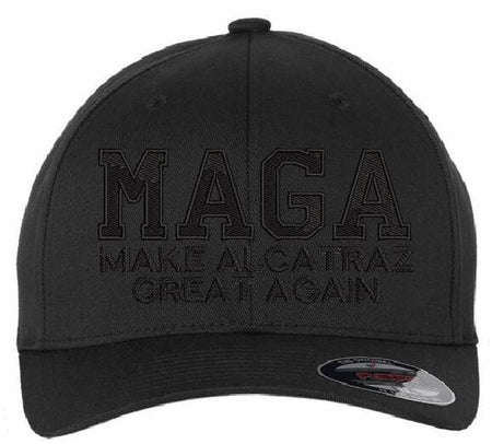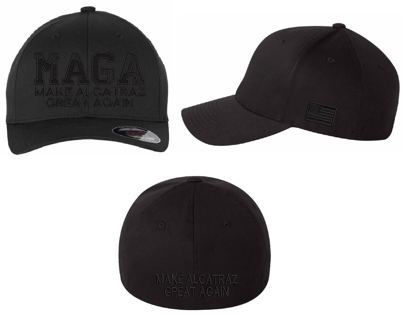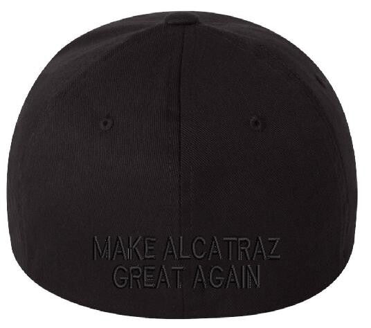 Make Alcatraz Great Again Embroidered Flex Fit BLACKOUT Hat with Flag & Back