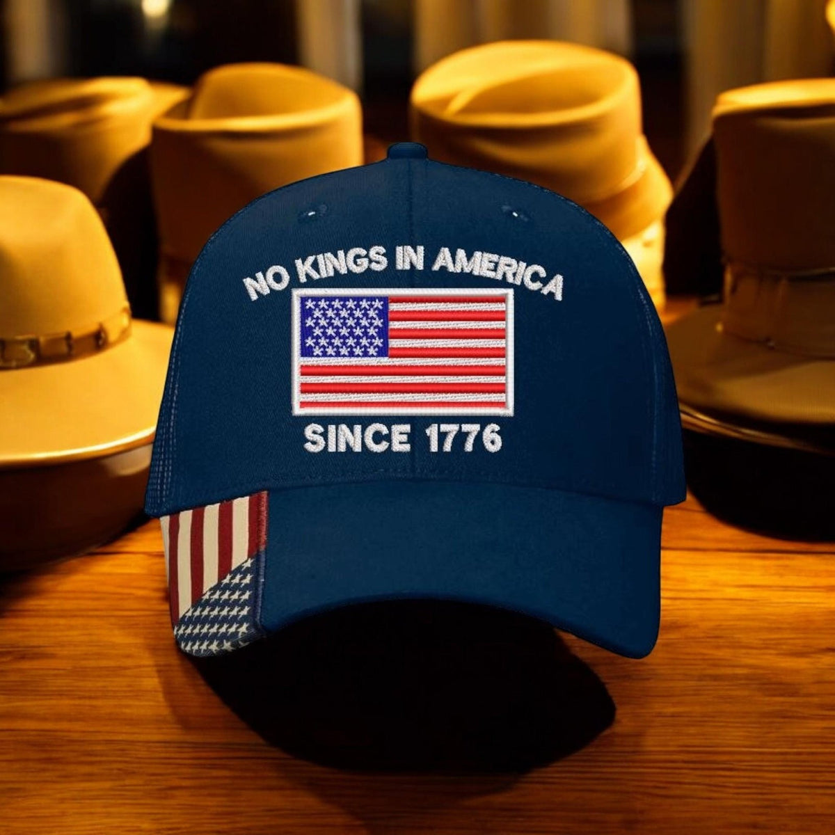 No Kings In America Embroidered Hat, Hat Gift For Anti MAGA Anti Trump Ball Cap