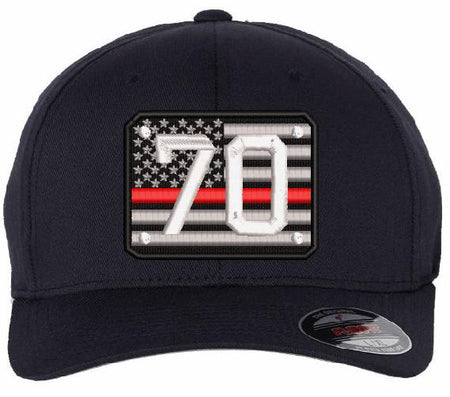 Embroidered Ball Cap - Red Line Flag Badge Embroidered Flex Fit Hat