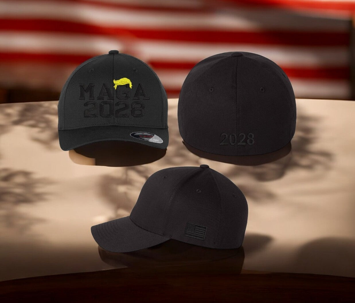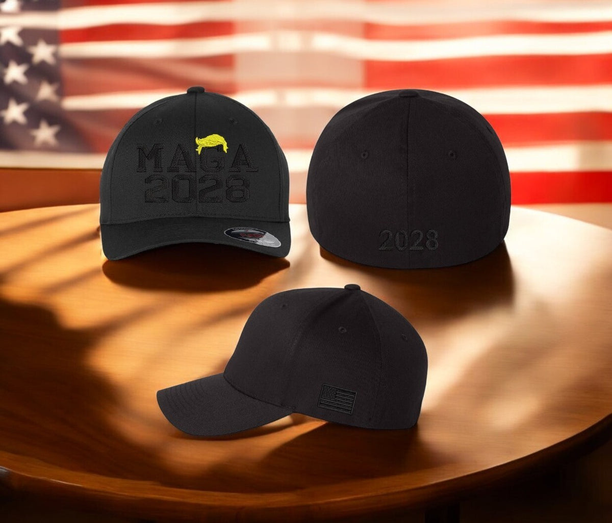 Trump 2028 Hat - MAGA 2028 Embroidered Flex Fit Trump Hat Black Embroidery Hat
