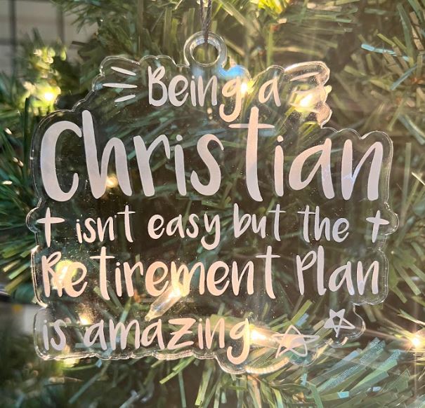 Christian Christmas Ornament - Laser Engraved Acrylic Faith Based Oranment with Hanger.